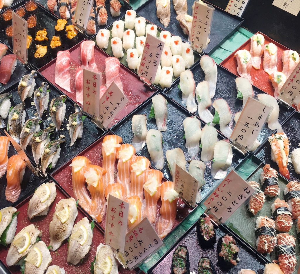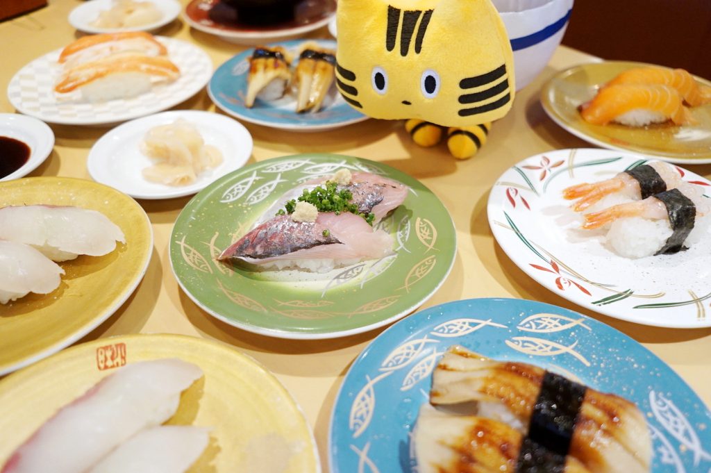 ほとんどのお客さんが1階で握り寿司を買い、市場内のベンチや屋外の芝生ゾーンで食事を楽しみますが、市場の2階に回転寿司屋さんがあることは意外と知られていません。席について快適に寿司を堪能したいなら、穴場スポット『海転からと市場寿司』へ!