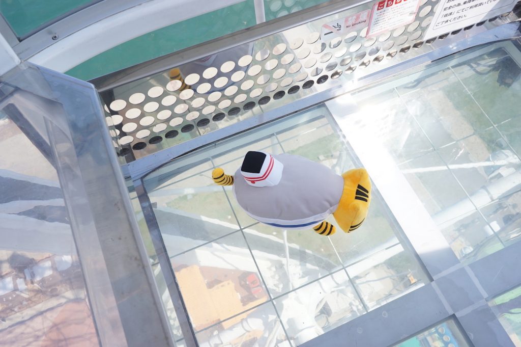 ひゃっ、宙に浮いているような感覚を味わえてスリル感満点! 足元まで含め360度のパノラマ〜! ですよね? ふねこさん!?