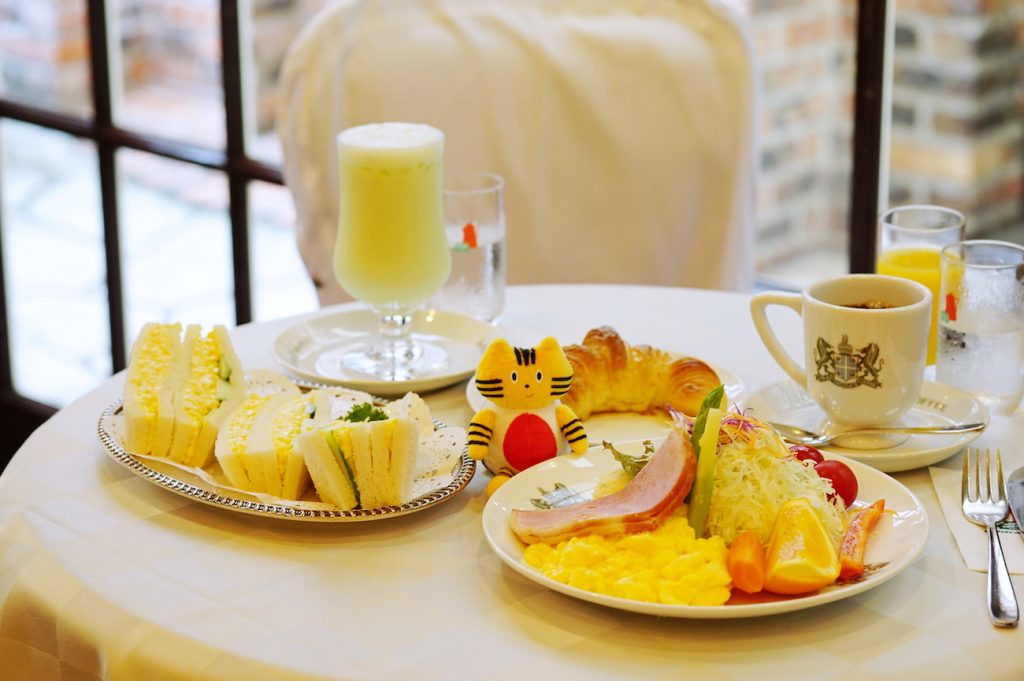 「京の朝食」が初めてメニューに登場した1994年頃と変わらないレシピで作られるフワッフワのスクランブルエッグ、ボンレスハム、サラダ、カットフルーツ、そしてクロワッサンとコーヒー、オレンジジュースがセットになったスペシャルな一品。喫茶店らしいサンドウィッチやフルーツジュースもレトロで素敵!