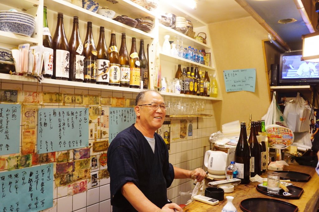 自慢の嗅覚を働かせたふねこは、一番奥にある小料理屋「てしま」にお邪魔しました。カウンターのみのコバコ空間のこちらでは、この道40年の店主による京都流のおばんざいを楽しめます。
