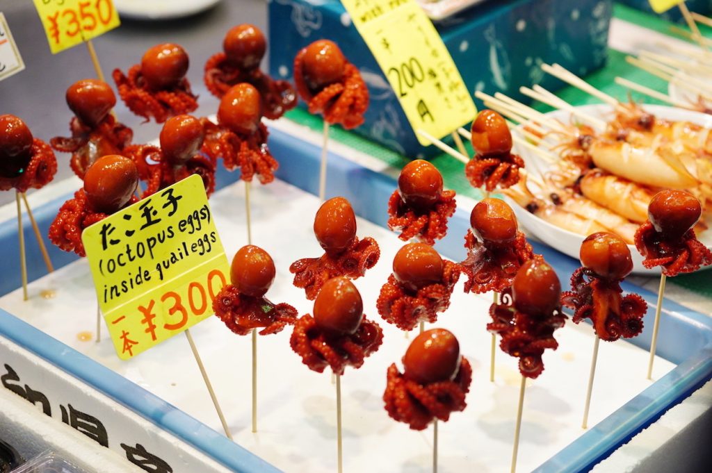 代表的な店舗といえば、京料理に欠かせない京生麩の専門店『麩嘉(ふうか)』、ヌカ漬けの木樽がずらりと並ぶ京漬物専門店『錦・高倉屋』、イイダコの頭にうずらの卵を詰めた「たこたまご」を販売する『櫂-KAI-』。