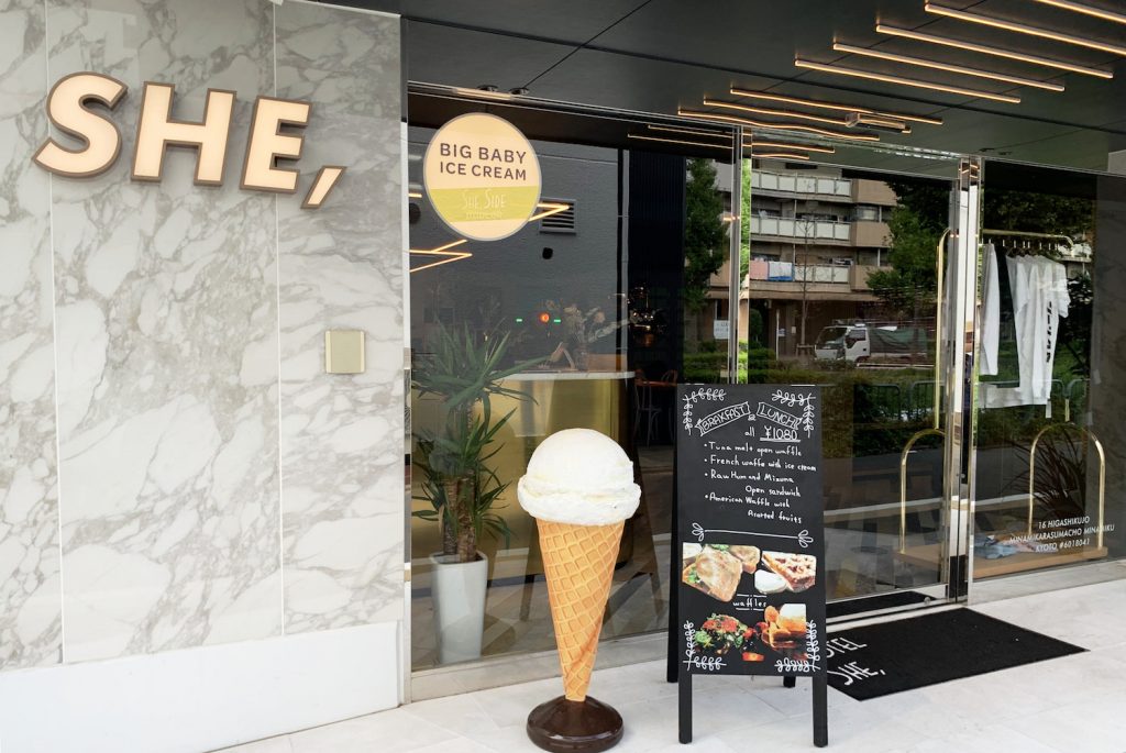JR京都駅・八条口から徒歩10分ほど南下した場所にある『HOTEL SHE, KYOTO』。セレクトショップのように垢抜けたスタイリッシュな外観で、入る前からテンションUP♪