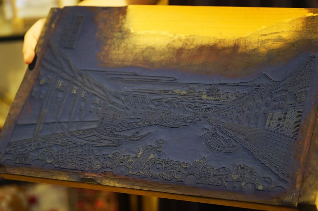 木版画は、下絵を描く“絵師”、下絵に沿って版を彫る“彫師”、版を使って紙に摺り上げる“摺師”がそれぞれいて、江戸時代の伝統技術を駆使して三者分業制で一つの作品を作り上げます。最近では一人で全工程を行うこともあるそうです。