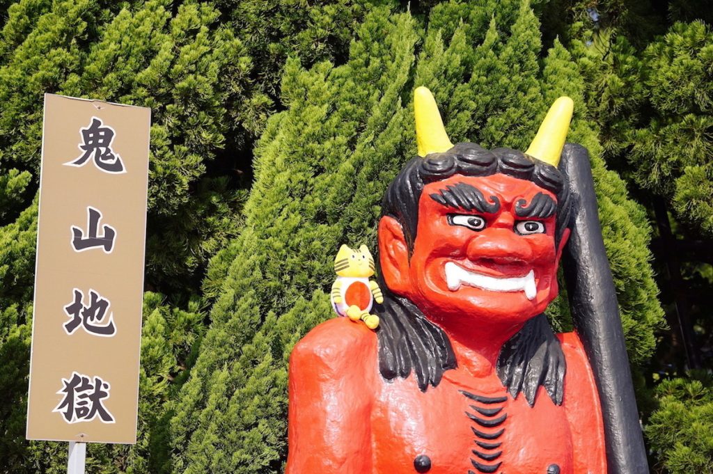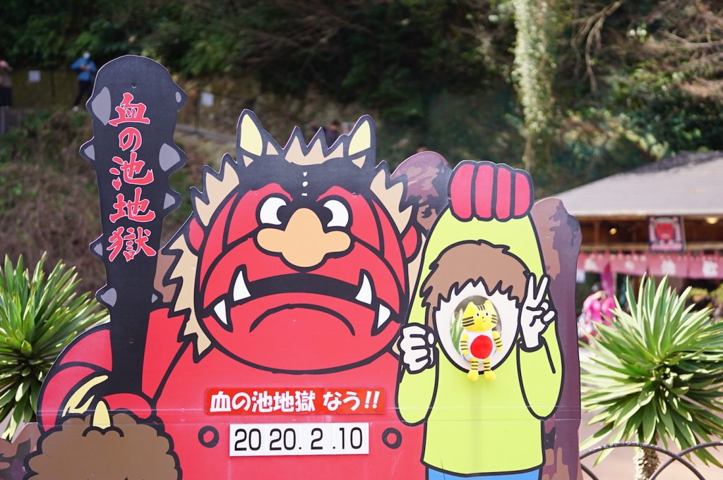次にやってきたのは、『鬼山地獄』。巨大な赤鬼がドヤ顔で迎えてくれるので、ここでもすかさず写真をパシャり♪ 地獄めぐりを呑気に楽しんでいたふねこでしたが、その平和な空気もここまで。リアルな“地獄”を垣間見ます…。