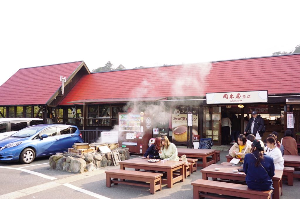 絶品・地獄蒸しプリンで休憩、『岡本屋売店』。
