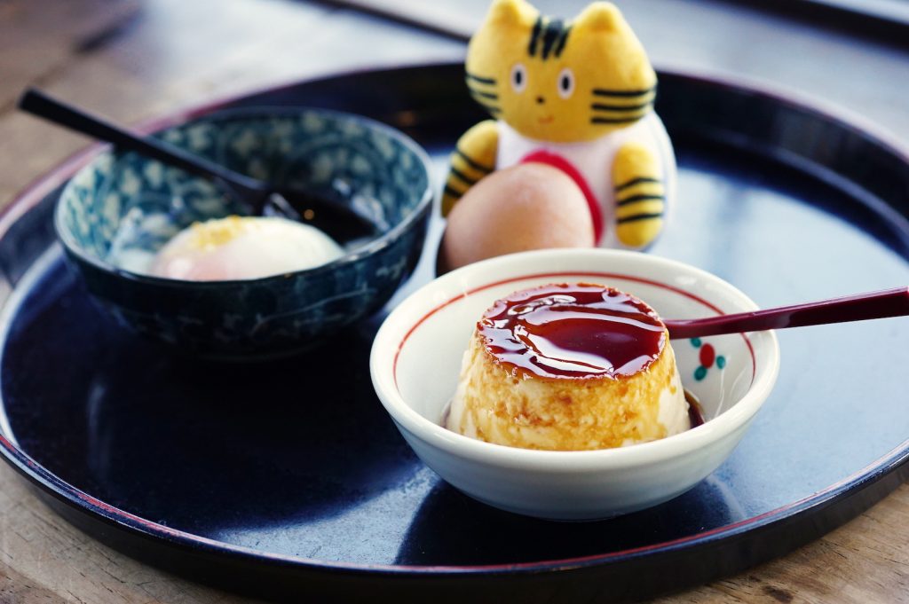 別府のプリンブームの火付け役とあって最高においしくて、すこし硬めの滑らかさもまたよし。地獄蒸しプリンを使ったパフェもあるので甘党さんはぜひ♡