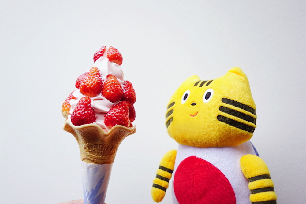 熊本県産の厳選素材で作る『TENTE』の果物スイーツも人気♪ “鬼盛り”の熊本県産いちごのソフトクリーム(500円※季節限定)は食べ応えありの一品。フレッシュな甘酸っぱさとコクが幸せを運んできます♪