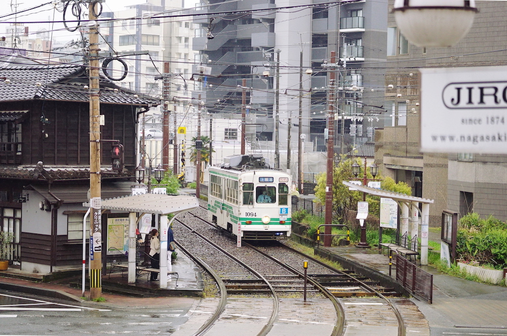 窓の外には路面電車が。