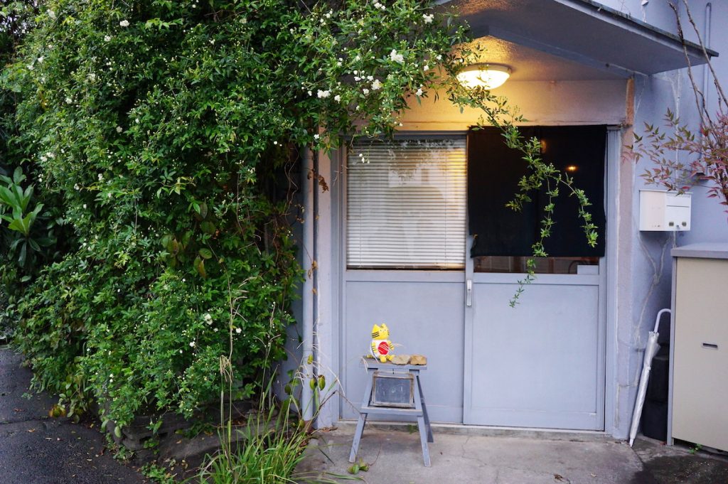 小雨がぱらつく夕刻の熊本。しっとりとした空気に心地よさを感じながら訪れたのはこちら。中心部から一歩離れた場所に静かに佇む喫茶室『花と骨董 さかむら』です。控えめな表構えが探究心をくすぐりますね。