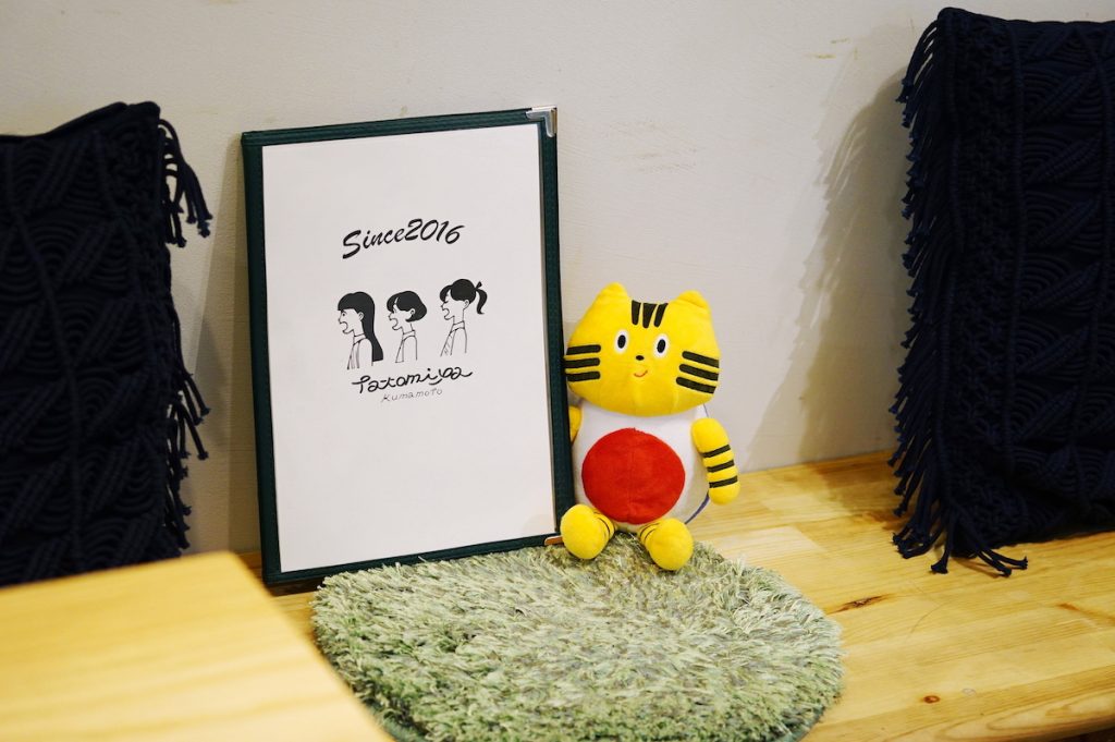 ちなみに、メニュー表には熊本にゆかりがあるアーティスト、たなかみさきさんのイラストが♡ 女の子3人とも大きな口を開けてサンドイッチを待っています♪