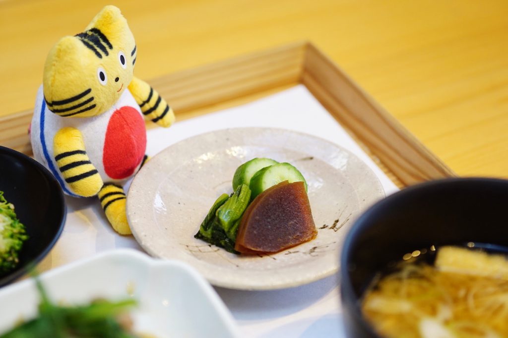 定食の副菜は、大根とゴボウの梅煮と、ブロッコリーと舞茸のナムル。そして新香にはもちろん奈良漬も!! ごはんのおかわりが無料ということで、ふねこは2杯分ペロリといただきました♪