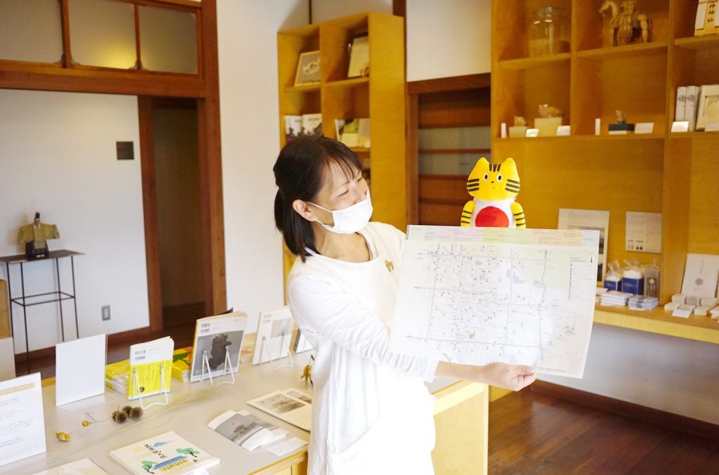 奈良のエリアマップを指しながら、スタッフさんがおすすめスポットを教えてくれます