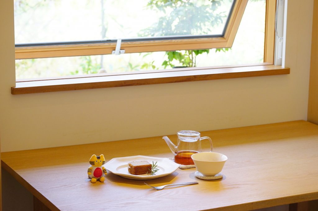 『囀-saezuri-』では11:00〜15:00がランチタイム、15:00〜17:00が喫茶の時間。ふねこはティータイムに囀オリジナルの有機紅茶「やまみどり」(650円+税)と「生姜のパウンドケーキ」(500円+税)をセレクト。