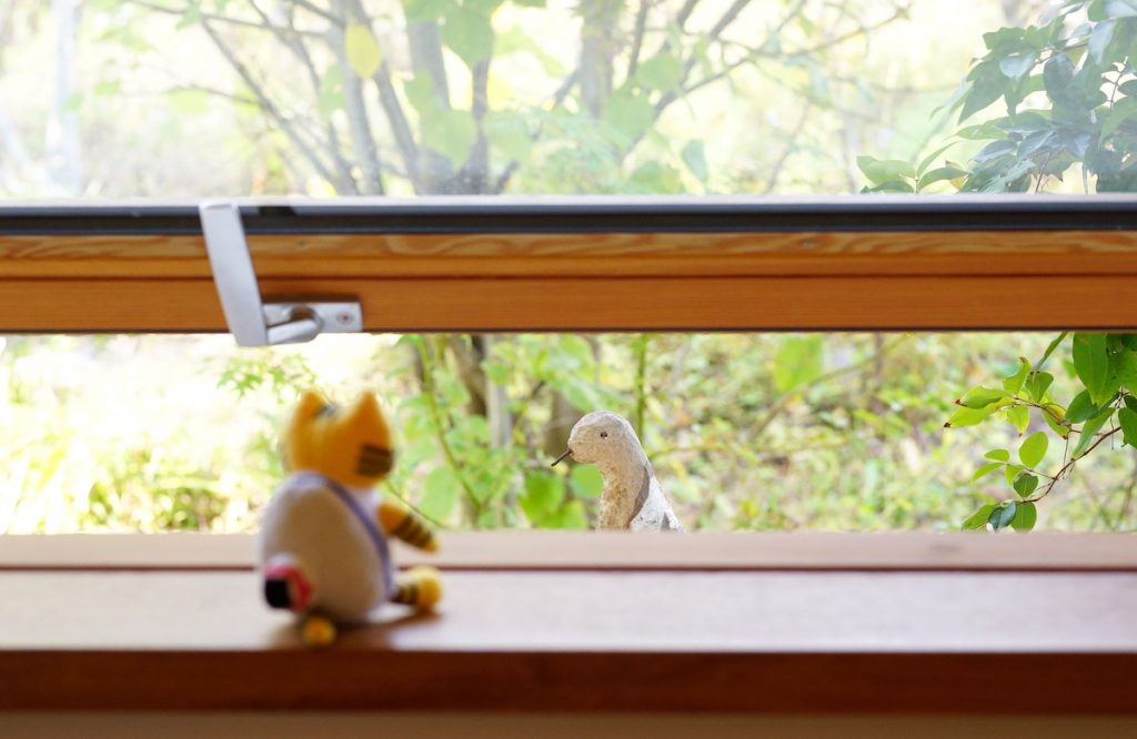 窓の外からは鳥のさえずりが聞こえます。どこかから視線を感じると思ったら、窓際から「こんにちは」のご挨拶。しばらく見つめ合うふねこと鳥さん。