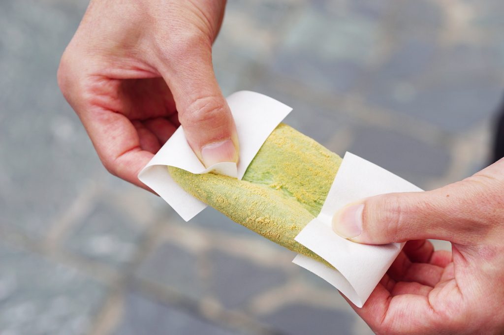 『中谷堂』では高速餅つきのパフォーマンスが毎日行われ、もっちり柔らかなつきたてのよもぎ餅を販売しています(餅つきの時間は日によって異なります)。佐賀県産のもち米や北海道十勝産の小豆など上質な素材を使用し、すべて手作りで作られているので、子供も安心して食べられます♪