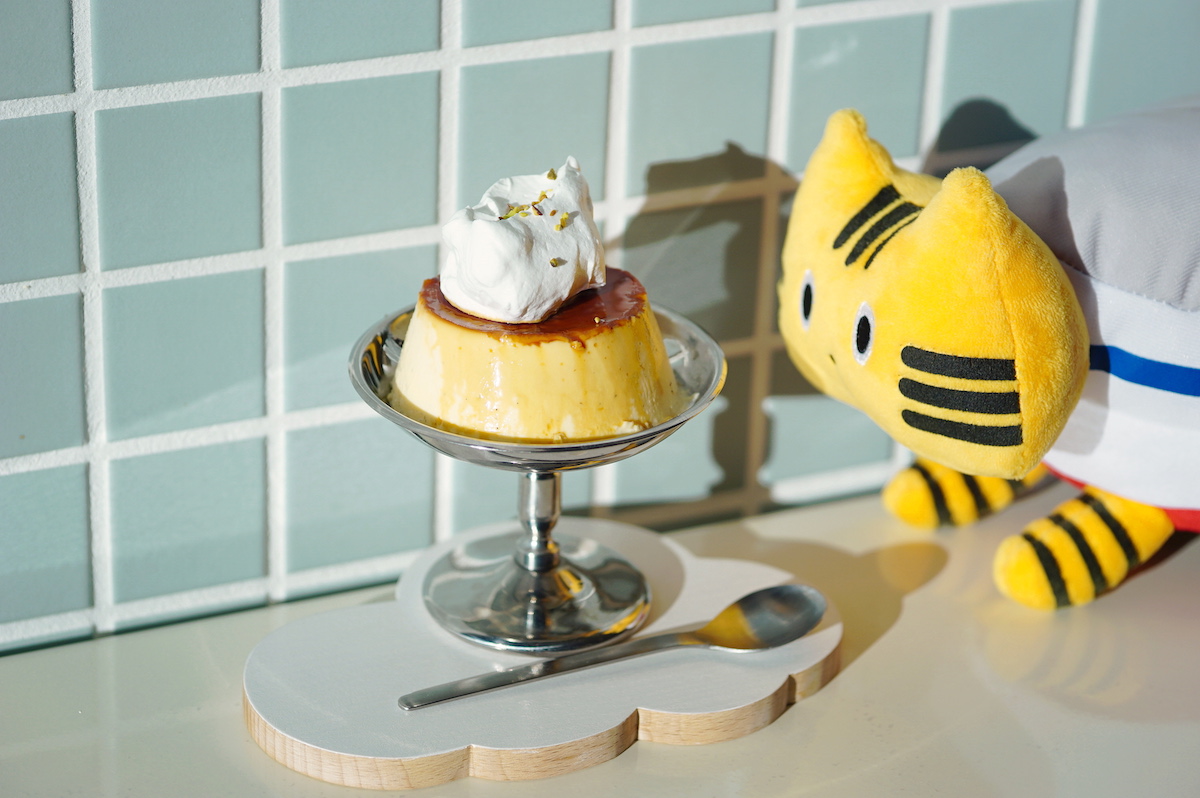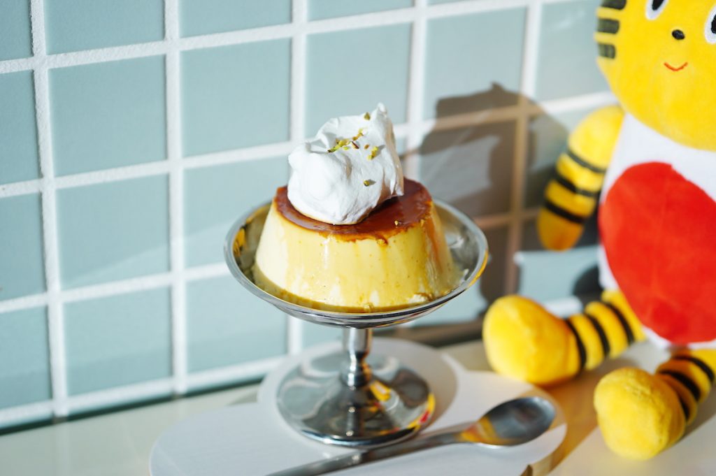 クラシックな硬めのプリンにふわふわのホイップクリームが雲のように乗り、思わず写真に撮りたくなるほど目でも楽しめる一品です。
