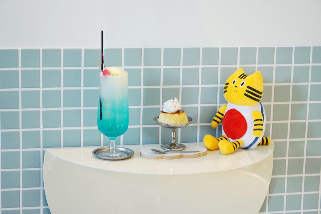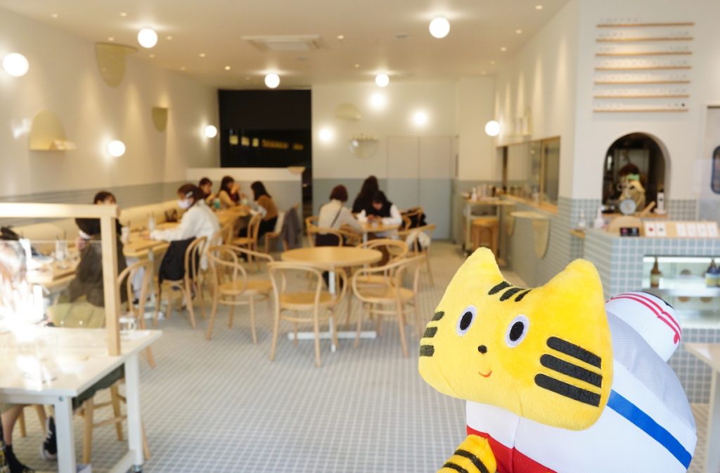 パステルブルーのタイルが印象的な店内でかわいいスイーツに囲まれて、乙女心スパーク中のふねこ。食べるのがもったいなく思っちゃいますよね…!