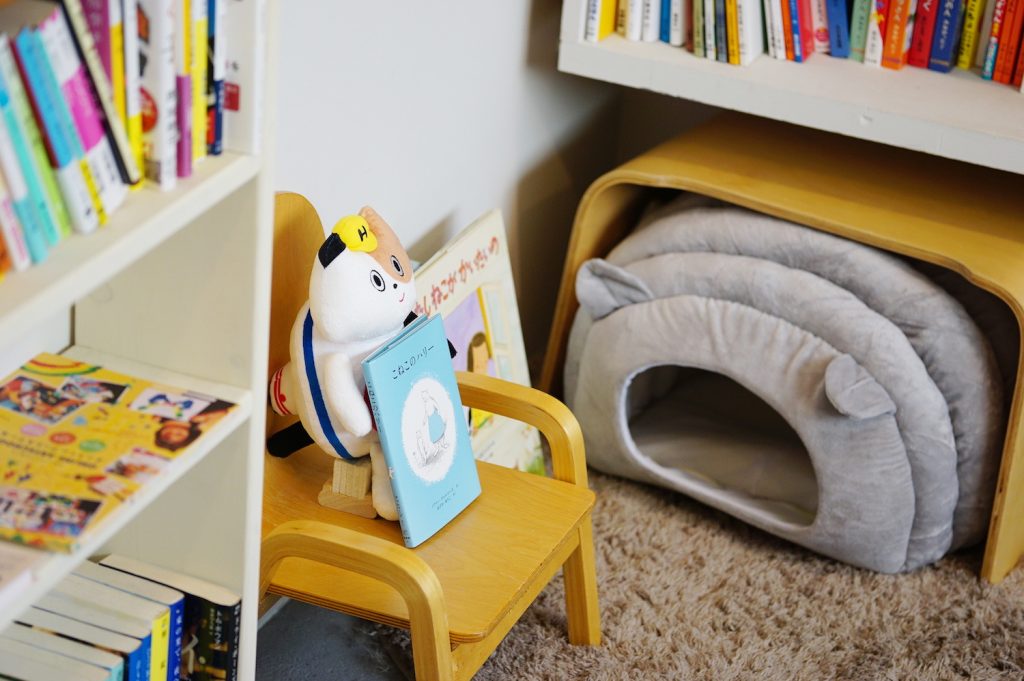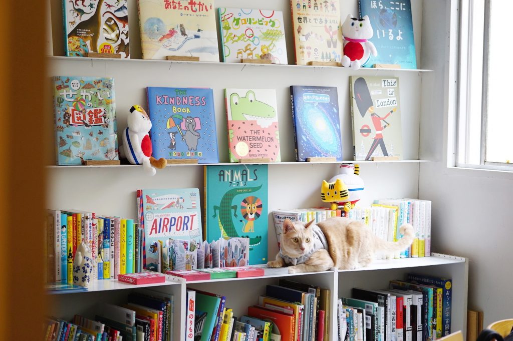 ミルクティー色の看板猫がいる、小さな絵本屋『Books cyan』