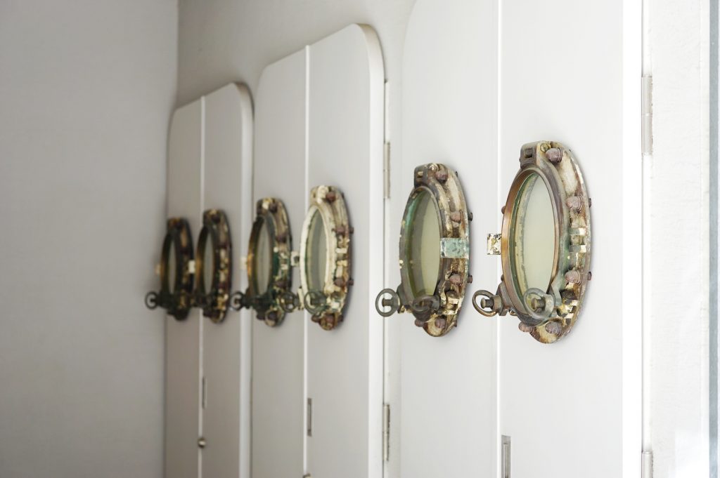 船でよく見る舷窓(採光と換気のための窓)がエントランスに飾られ、ふねこ的には親近感が湧いてきます。
