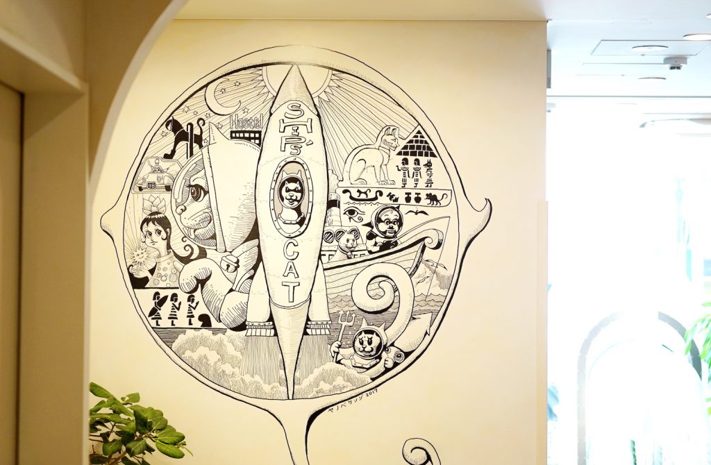 ロビーにはヤノベケンジ氏による壁画や書き下ろしの絵画が飾られ、まるでギャラリーのような空間です。