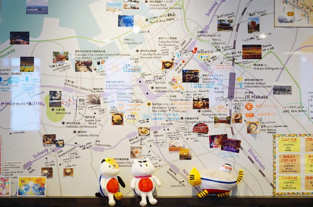 「こんにちは!」と迎えてくれたのは、『WeBase HAKATA(ウィーベース ハカタ)』フロントマネージャーの中原梨江さん。そう、ここは9階建ての宿泊施設なんです。鎌倉・京都・高松・広島・博多の国内5箇所に展開し、博多は九州最大の繁華街・中洲へ徒歩約4分の好立地な場所にあります。