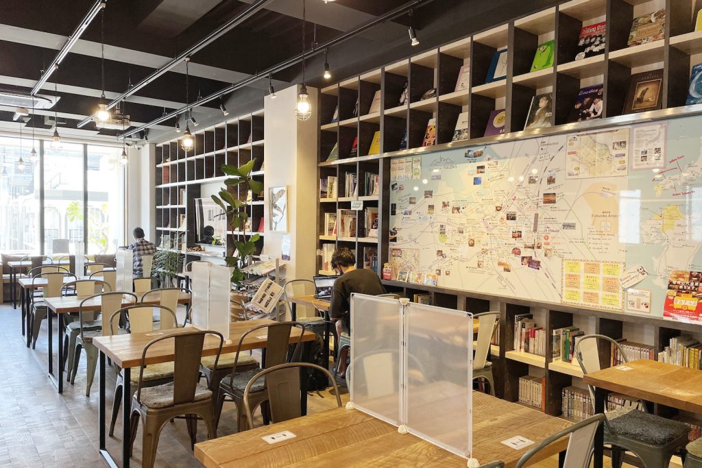 最上階は24時間使えるブックス&ラウンジ。1500冊もの書籍が並んでいるので読書を楽しんだり、テーブル席で宿泊者同士で語らったり、パソコンを持ち込んで仕事や調べ物をしたり、いろんな用途で快適に過ごせます。