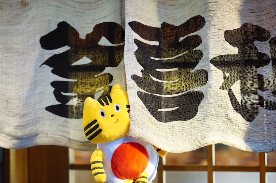 のれんからチラリと顔を覗かせたふねこ、うきうきの表情を隠せませんね♪