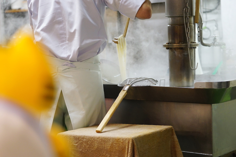 店内の麺工房で作られた、打ちたて&茹でたてのうどん麺。舌触りの滑らかさと、ぷるんとした弾力のバランスがよく、つるりとした喉ごしも感動的!