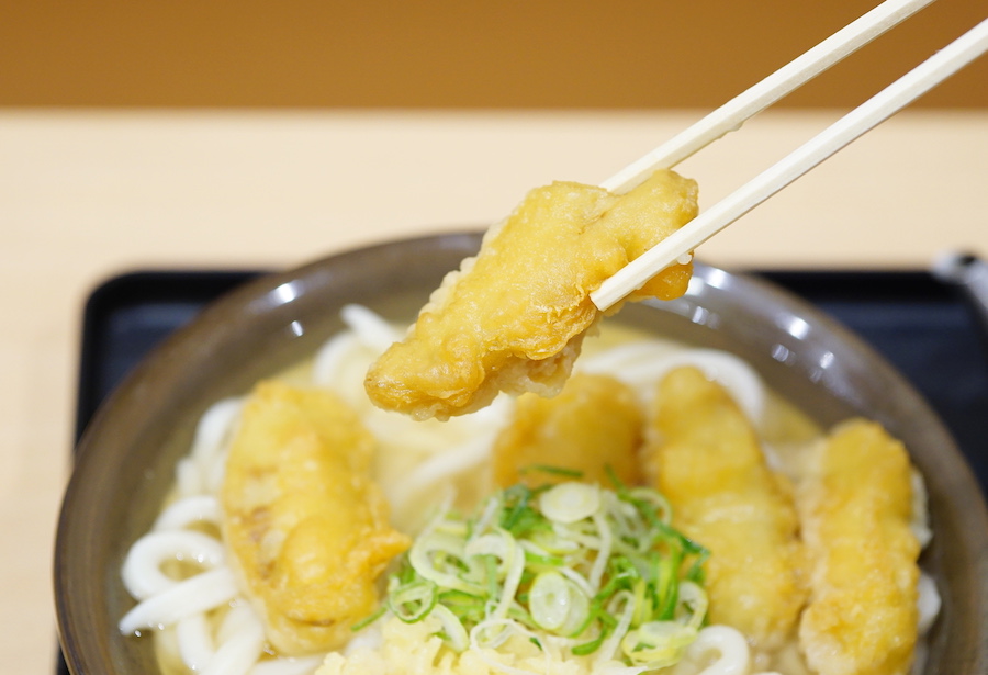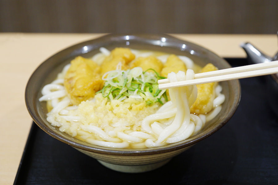 福岡のやわ麺うどんを体現する、もっちりとした自家製麺が特徴的な『牧のうどん』。福岡市内を中心に18店舗展開していますが、一番アクセスしやすいのは博多駅に隣接する博多バスターミナル店です。