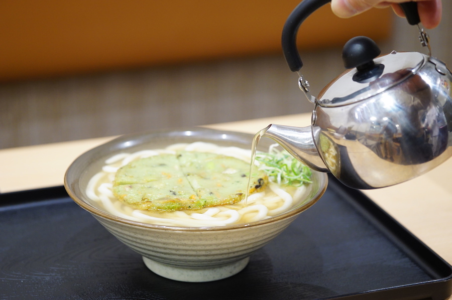 カツオや昆布のお出汁が効いたうどんスープは、ふねこも大好き!
