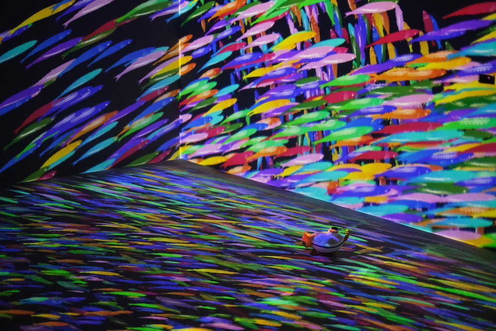 ちなみに、このエリアは「光のファンタジアシティ」と呼ばれ、建物それぞれが最先端デジタルアトラクションを体験できる施設になっているんです。花、森、宇宙など、7つのコンセプトに合わせて幻想的で美しい光のクリエイションを楽しめます。ふねこたちは海の世界に没入できる「海のファンタジア」へ!