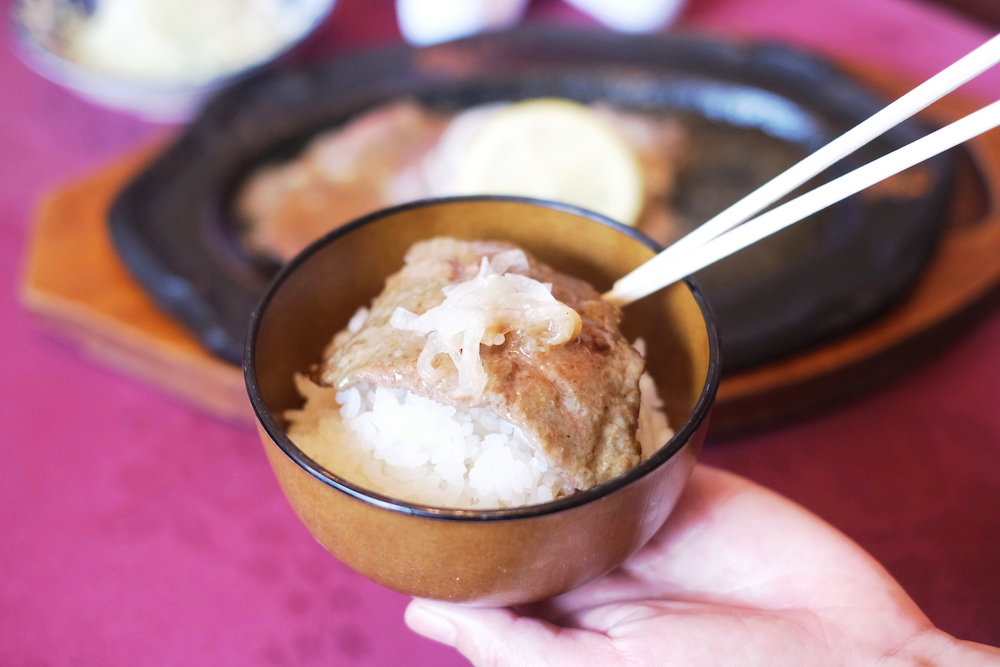 ライスを少量残しておいて、最後に鉄板上のステーキのソースと和えていただくのも楽しみ方の一つ。自慢のレモンソースを余すことなく存分に味わいましょう!