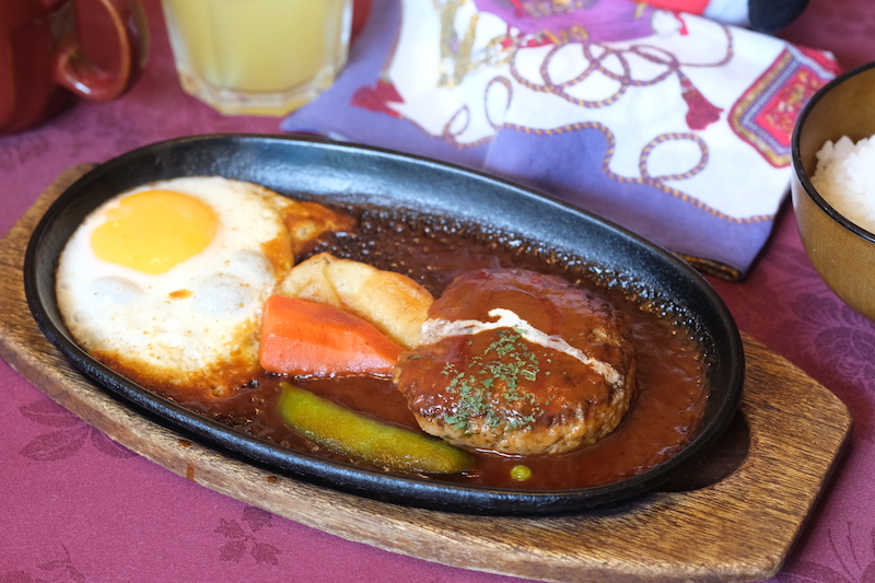 子連れにもうれしいお子さまメニューもありますよ。キッズサイズの「れもんすてーきセット」や「ころっけセット」などをスタンバイ。みけやんは「はんばーぐセット」を特別にお味見♪