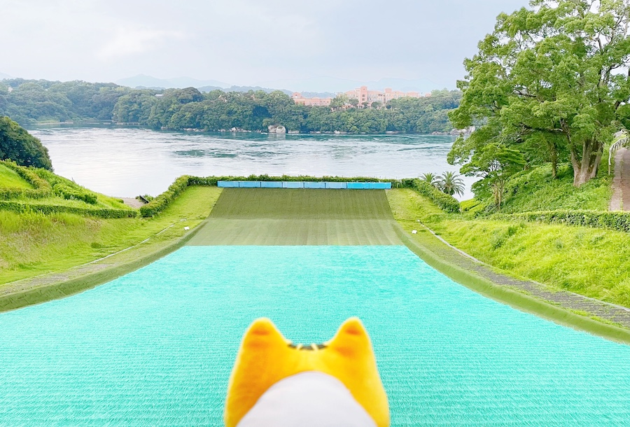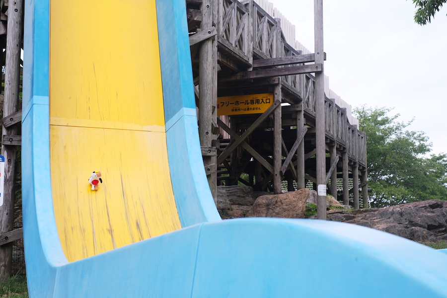 直角のすべり台に挑戦するみけやん。こちらもうず潮に負けないほどスリル満点のようでした‼︎