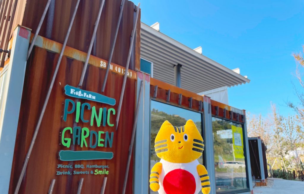 PICNIC GARDENは『Frogs FARM(フロッグス・ファーム)』という広大な施設の中にあり、敷地内にアイスクリームショップ、ベーカリーショップ、カフェやレストラン、宿泊施設がずらりと並び、ここだけで一日過ごせるほど立ち寄りスポットが充実しています。駐車場も完備され、宿泊者以外の人も気軽に利用できますよ♪