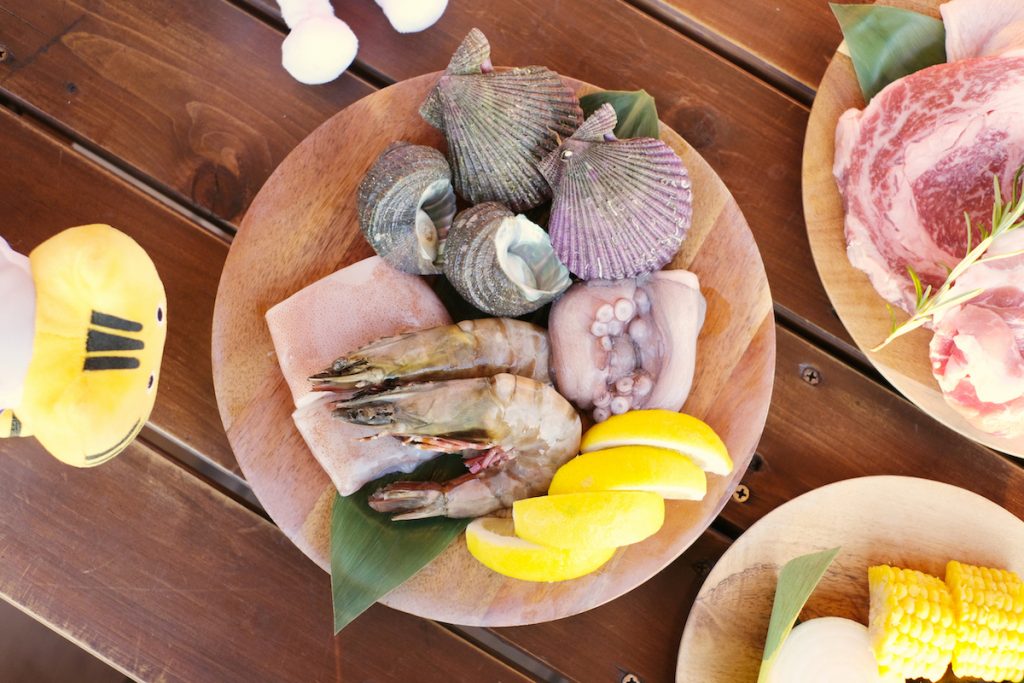 くぅぅぅ〜! 海の幸、山の幸、お肉もガッツリいただけて、食いしん坊には絶対おすすめ。手ぶらですぐに、こんな豪勢なBBQを楽しめるのは本当に快適すぎます…!