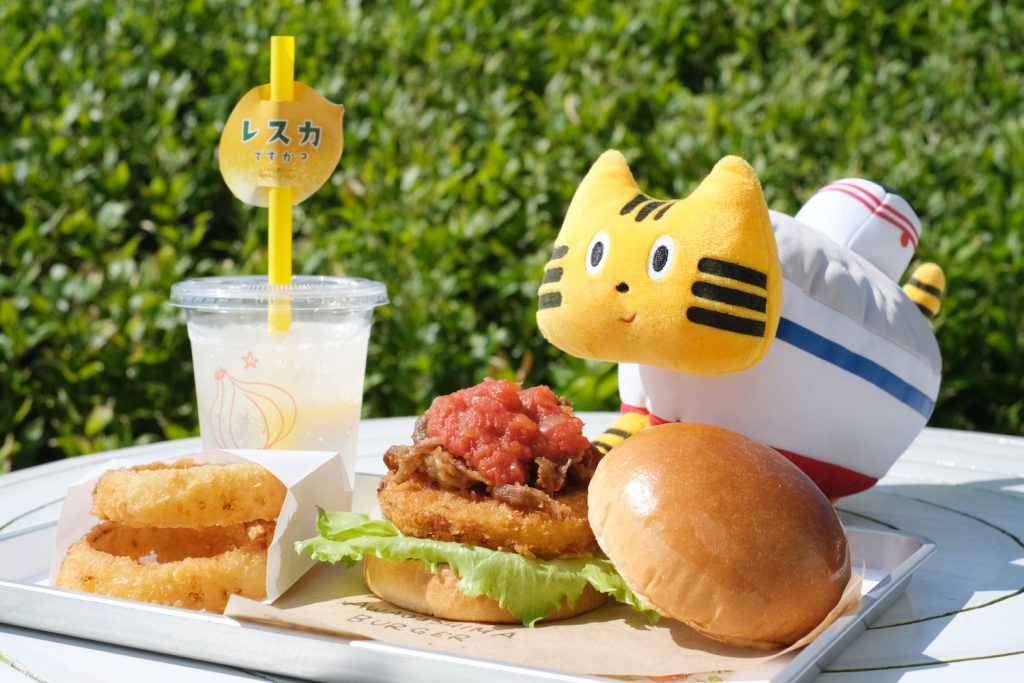 『うずの丘 大鳴門橋記念館』には玉ねぎをテーマにした面白い仕掛けがたくさんあって、すっかり玉ねぎの虜になったふねこたち。玉ねぎのエンターテイメントを楽しんだ後は、やっぱり実際に淡路産の玉ねぎを味わいたいですよね…! ということで、ハンバーガーショップ『あわじ島バーガー淡路島オニオンキッチン』の人気メニューをいただきます♪