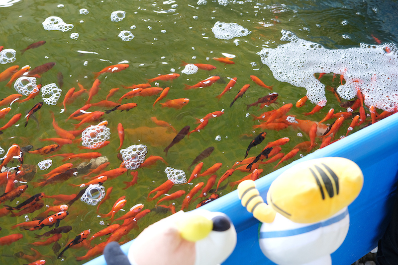 お祭り以外でこんなに金魚を見られるのは貴重ですね。そして大きな金魚をゲット〜!! 釣りのセンスを感じます…!