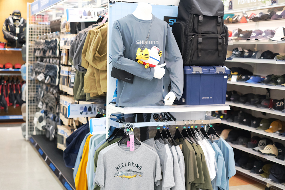形から入りたいふねこは、アパレル商品も気になる様子。さあ、準備を整えて、早速釣り場へ向かいましょ〜♪