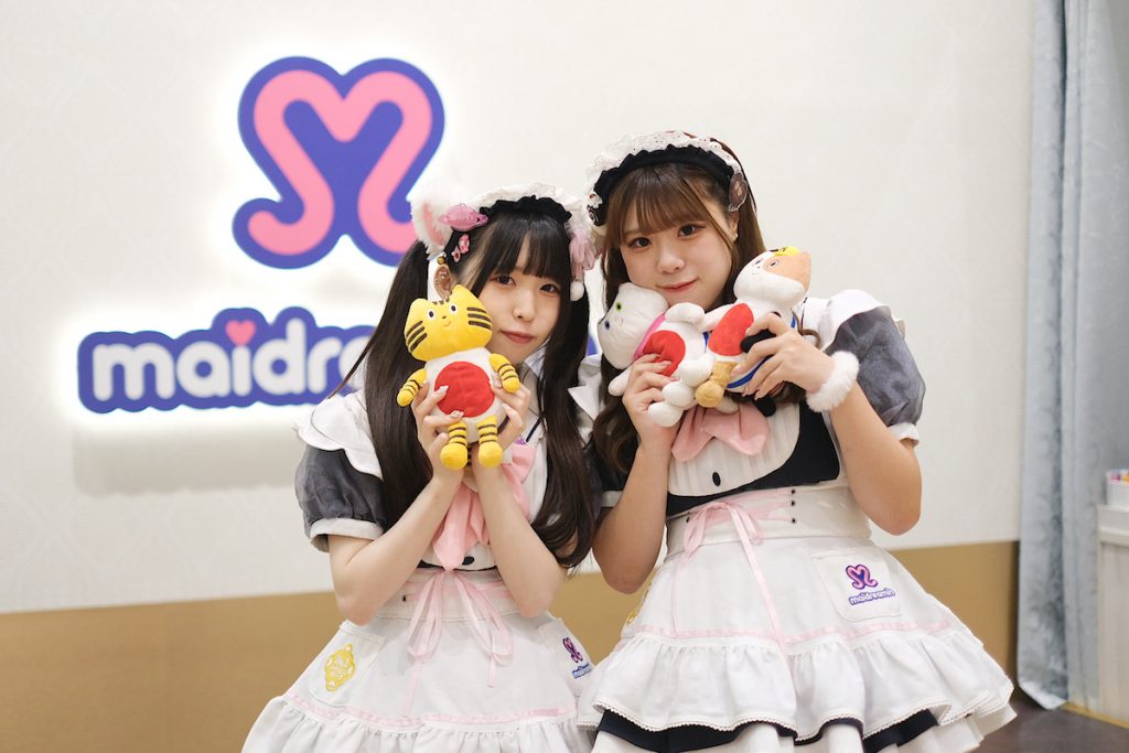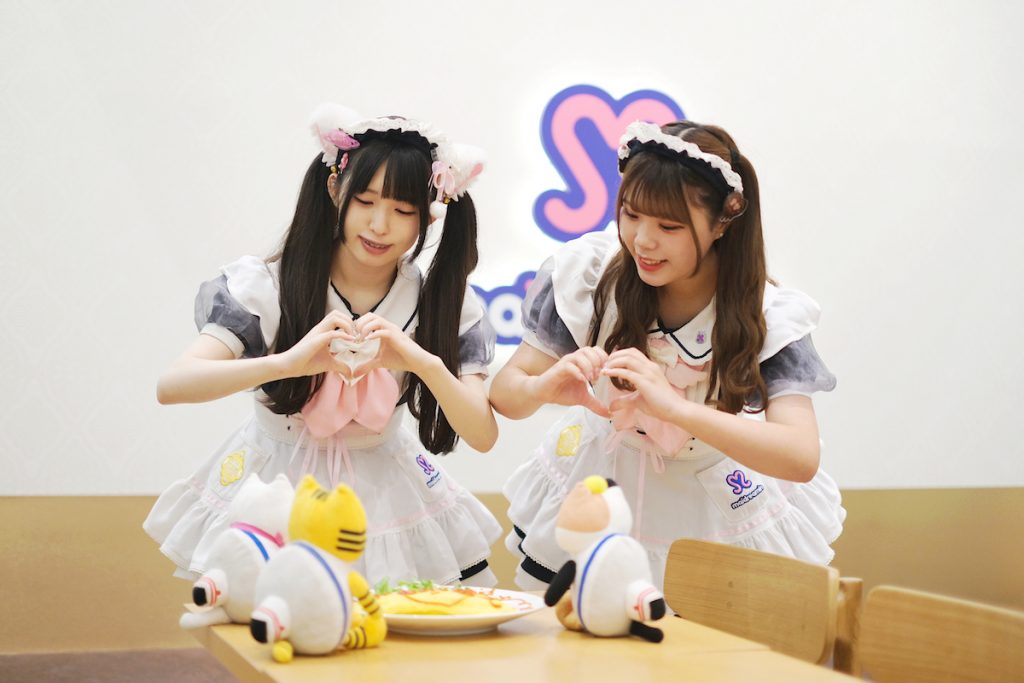 1階の人気スポットといえば、メイドカフェ『めいどりーみん 小倉あるあるCity店』です。夢の国への“入国”を果たしたふねこたち。萌えキュンなメイドさんたちが「ようこそ〜♪」と迎えてくれました♡
