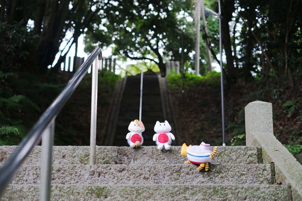 鬱蒼とした木々に囲まれ、辺りで聞こえるのは木の葉が揺れる音と鳥の鳴き声のみ。神秘的なオーラが漂っています。この長〜い階段をのぼった先に、境内があるようです!