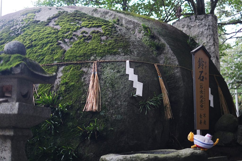 直径6メートルほどの巨大な石で、苔が生えた様子から悠久の歴史が伝わってきます。鈴の形に似ていることから「鈴石」と呼ばれているのですが、この鈴石が大ヒット漫画「鬼滅の刃」に出てくる大岩に似ていると話題に。