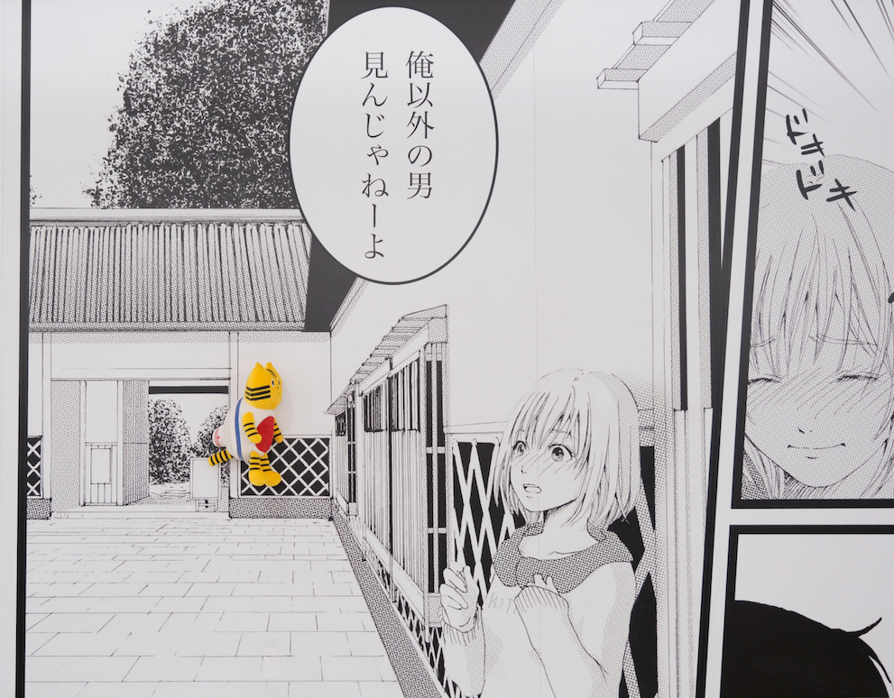 漫画の主人公になれるフォトパネルも…!! せつこはラブコメ漫画のヒロインになりきっていますね♡