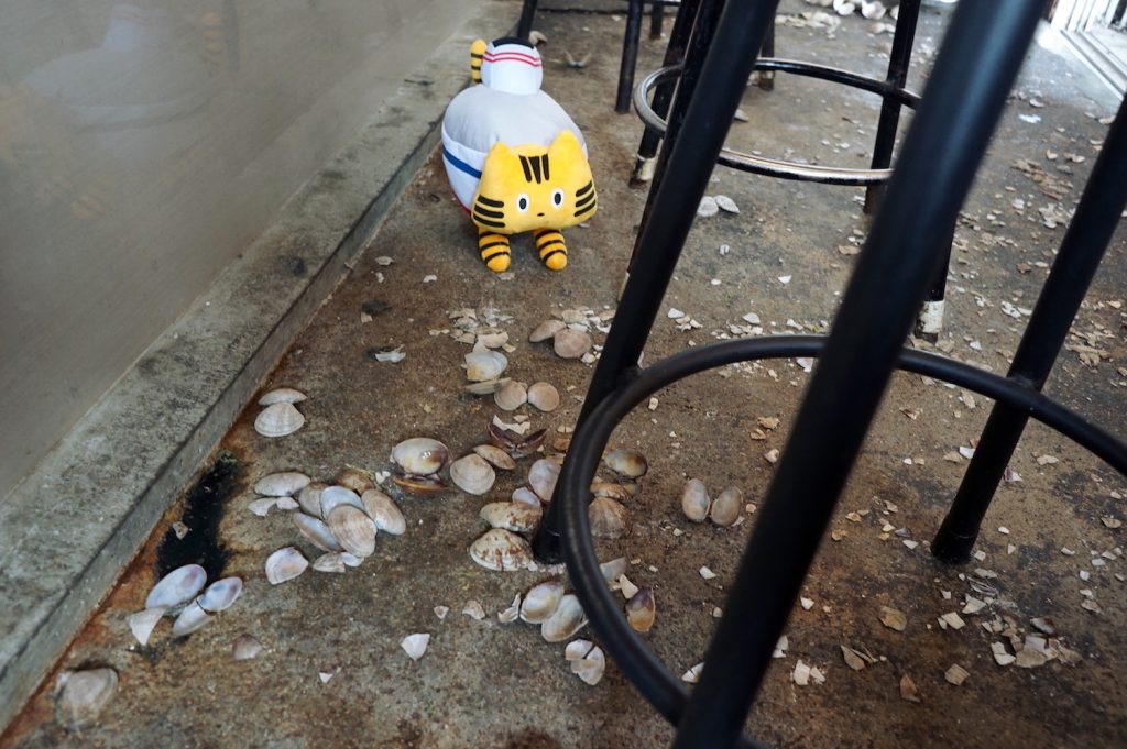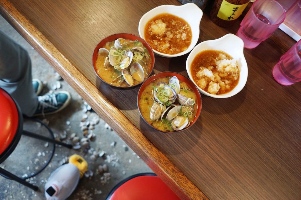 なんと『大吉』では、「あさりの味噌汁」(400円)を食べる際に、アサリの殻をぽいぽい床へ落とすのが暗黙のルールなのです。歩くたびにパリパリ貝が割れる音が鳴っておもしろい〜!