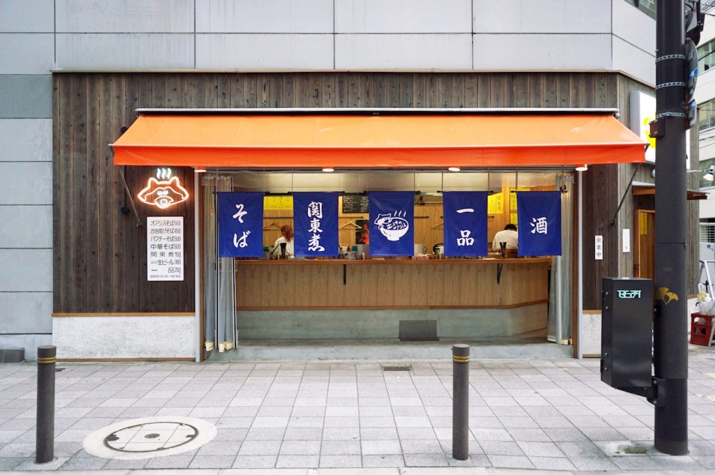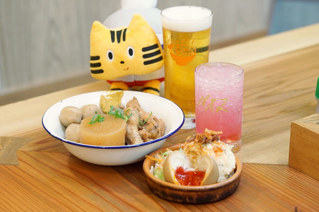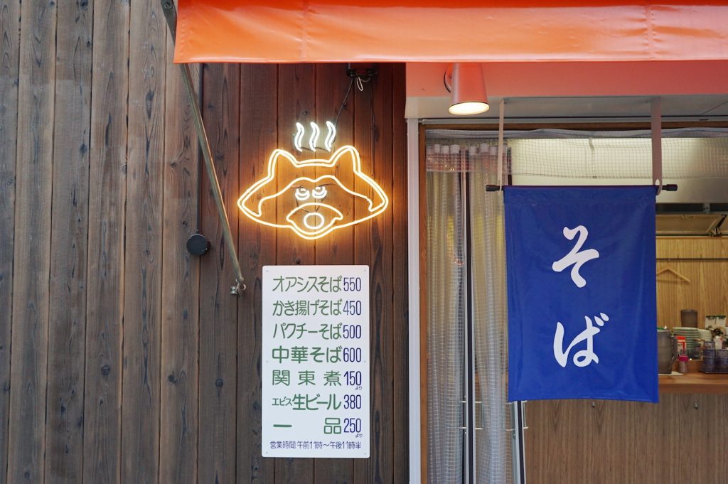 大阪でどうしても行ってみたい店があるようで、ふねこが駆けつけたのは、タヌキのネオンサインがかわいい立ち食い&立ち飲み屋さん。その名も『出汁のオアシス』。