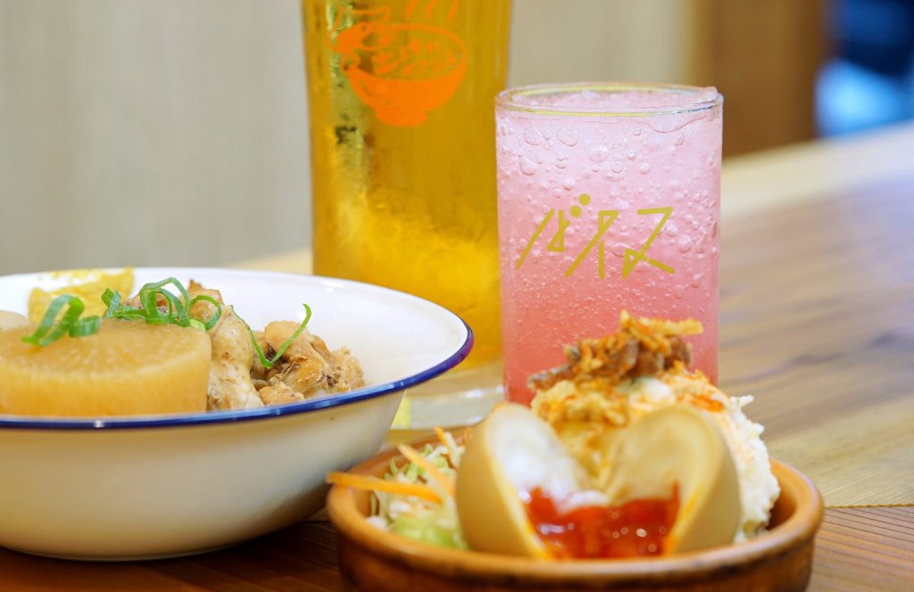 一品料理が充実していて、こだわりの出汁を使った「関東煮」(各種150円〜)や「アンチョビ煮卵ポテサラ」(400円)、「メンチカツ」(300円)などチョイ呑みにいいラインナップ。