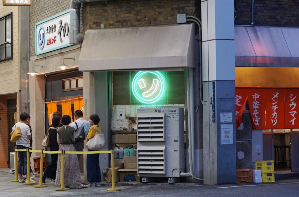 『出汁のオアシス』を楽しんだふねこは、そこと同系列であり、今大阪で話題の『大衆食堂スタンド そのだ』へ足を運びました。ここは賑やかな空堀商店街にあり、昭和の大衆食堂を現在版にアップデートしたネオ酒場。連日行列をつくる繁盛店です!