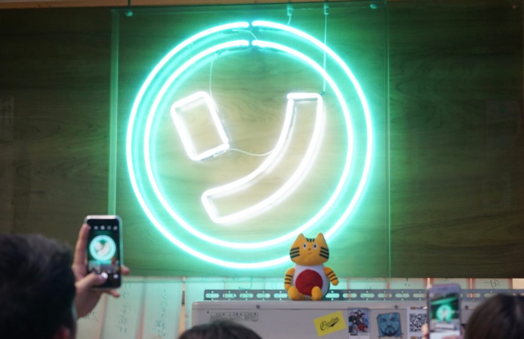 「ソ」のネオンサインがフォトスポットということで、ふねこも記念撮影。