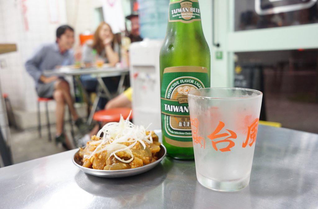 さすがは大阪! お客さんのノリが楽しくて、誰とでも仲良くなれそう♪ 台湾ビールでかんぱーい!