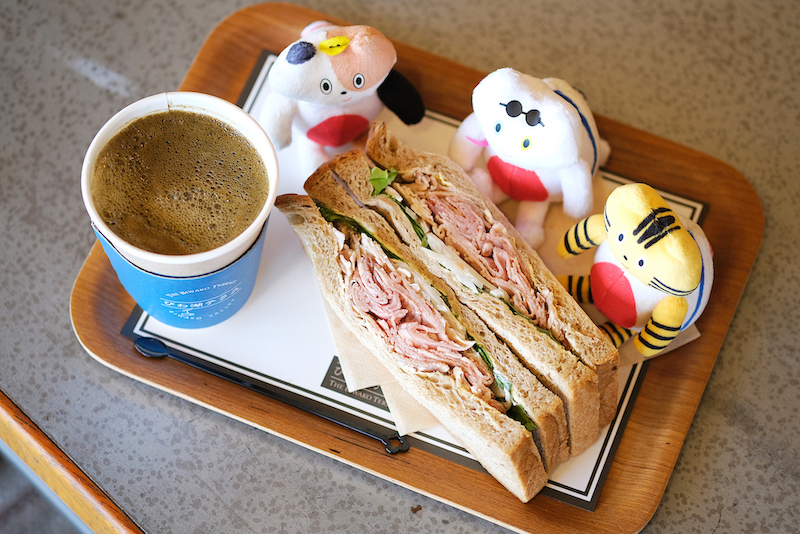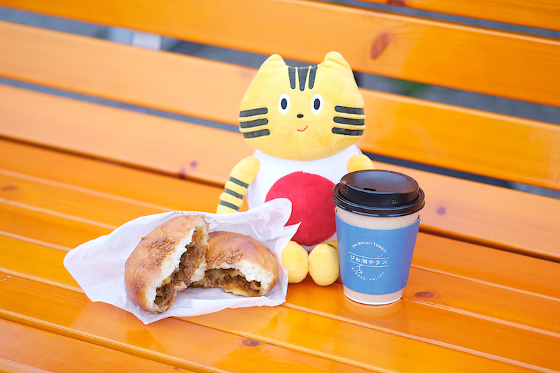 ふねこが手にしているのは、カフェスタンドのカレーパンとホットーコーヒーです。気軽に味わえるワンハンドの軽食も揃っているのもうれしい♪